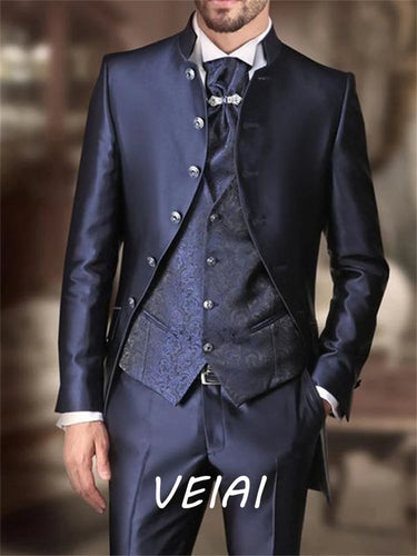 Trajes de boda para hombre con cuello levantado, chaleco Floral ajustado de Jacquard, chaqueta de 3 piezas, pantalones, disfraz de moda masculina